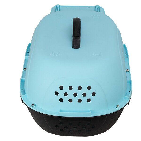 Пластиковая переноска для кошек и собак мелких пород "Чистый котик" 48*32*30 голубая