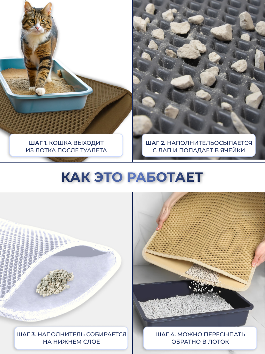 Двухслойный коврик для кошачьего туалета 64*46см, бежевый / Коврик под лоток для кота, собаки