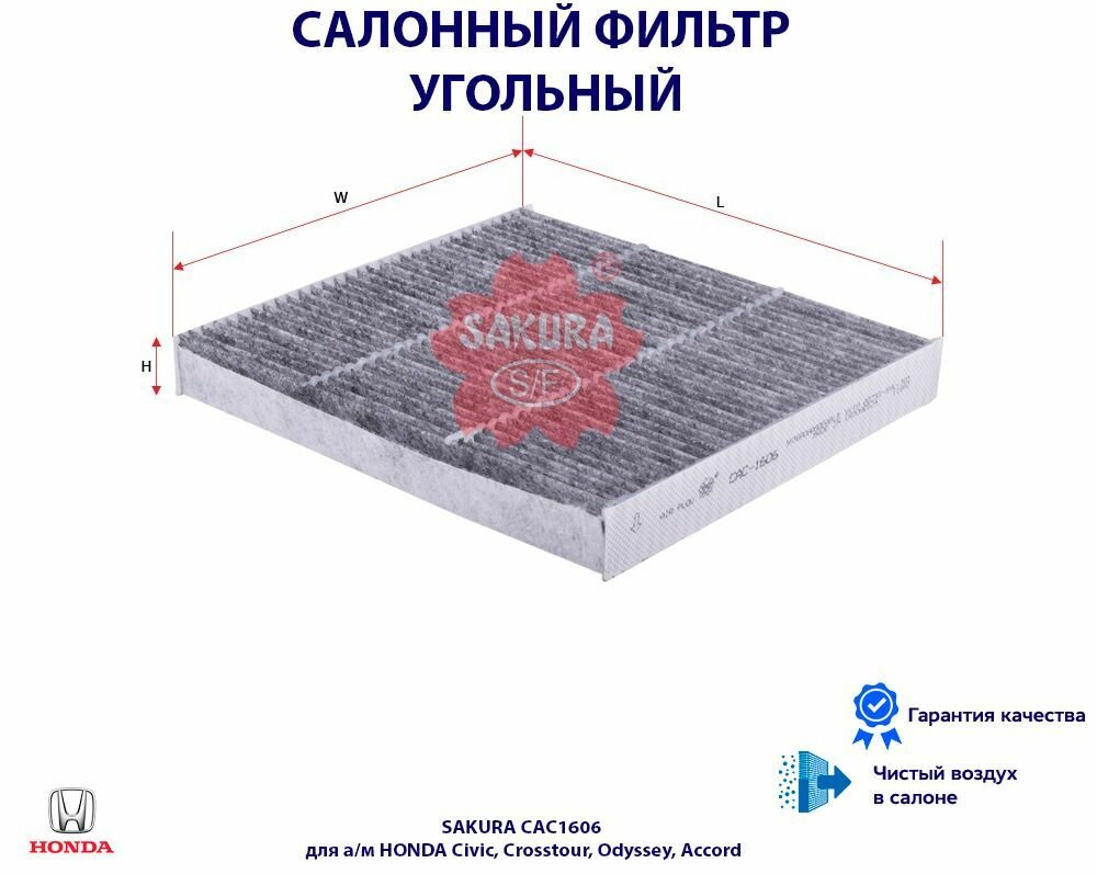 Салонный угольный фильтр HONDA ACCORD VII-VIII/PILOT/CR-V IV/CIVIC IX, ACURA TLX/MDX (хонда аккорд/пилот/цивик, акура ТЛХ/МДХ) SAKURA CAC1606 интересное: