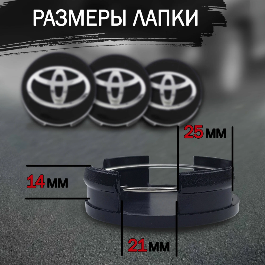 Колпачки - заглушки на литые диски Toyota 61 мм черные