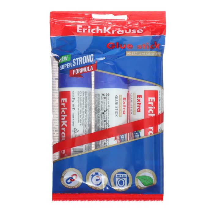 Купить Набор клея-карандаша 3 штуки, ErichKrause Extra PVP, 21 г, усиленный
