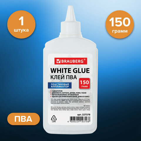 Клей ПВА BRAUBERG (бумага, картон, дерево), 150 г, 227378 интересное: