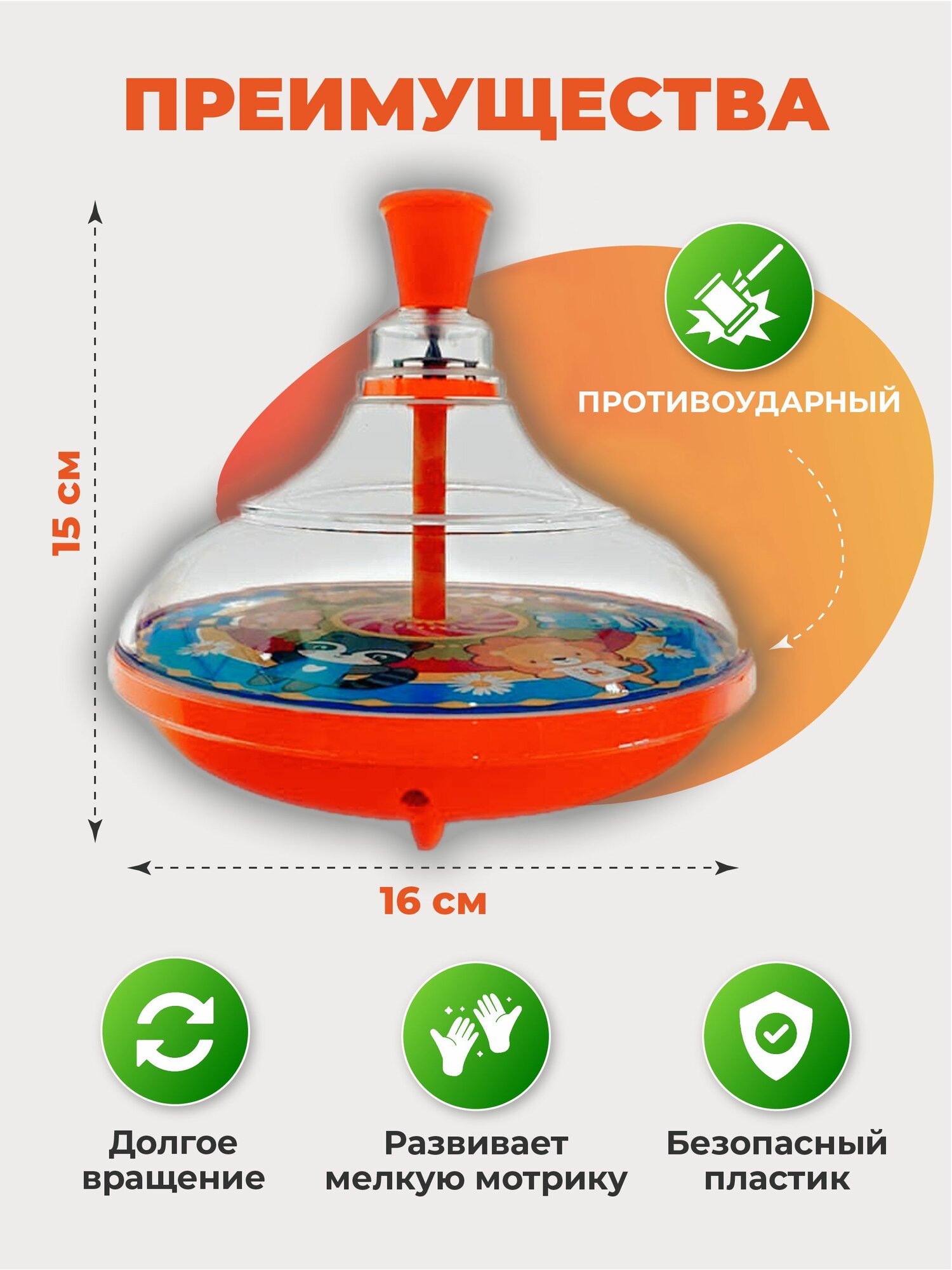 Детская юла Мандаринка, 15.5*14.5 см