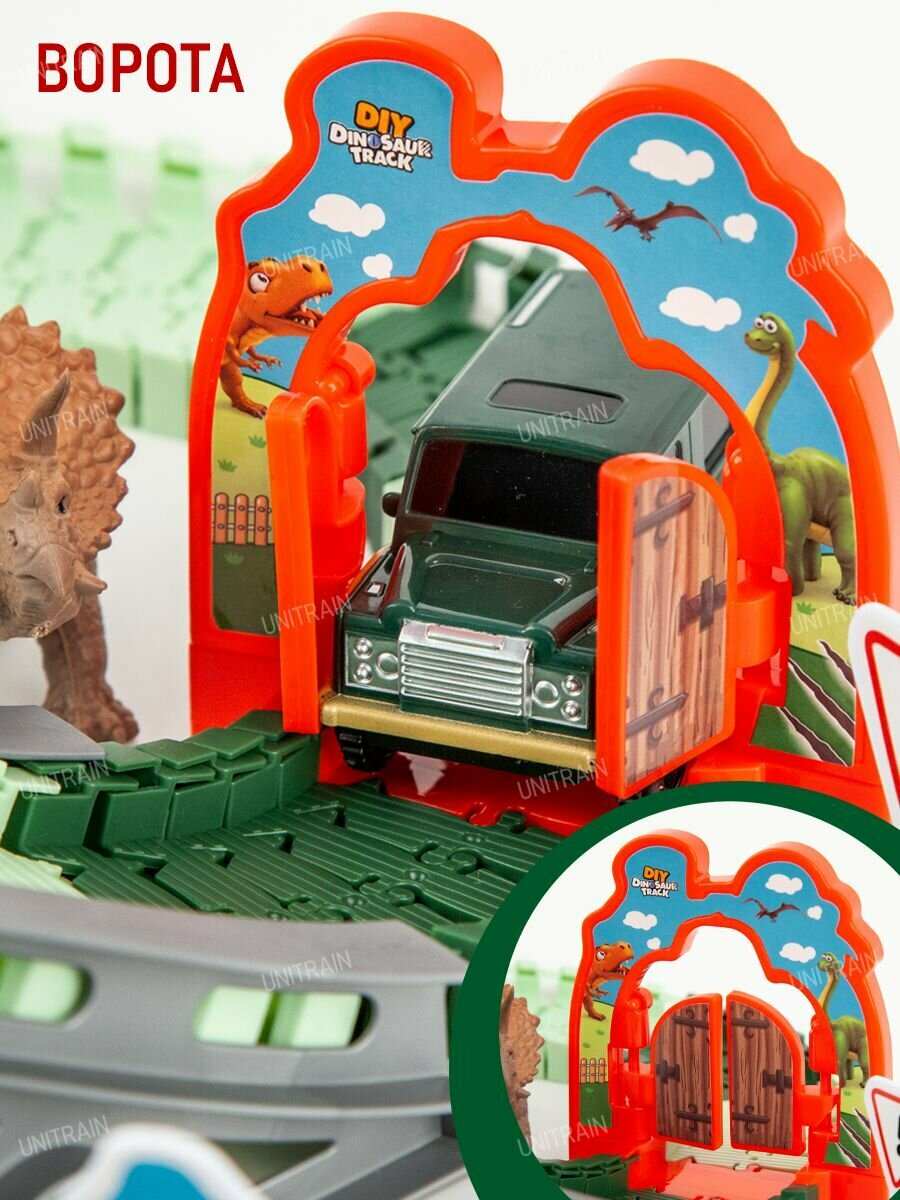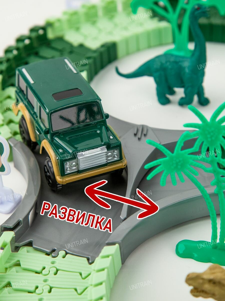 Автотрек с машинками, Veld Co / 138 деталей / Детский трек на батарейках с динозаврами