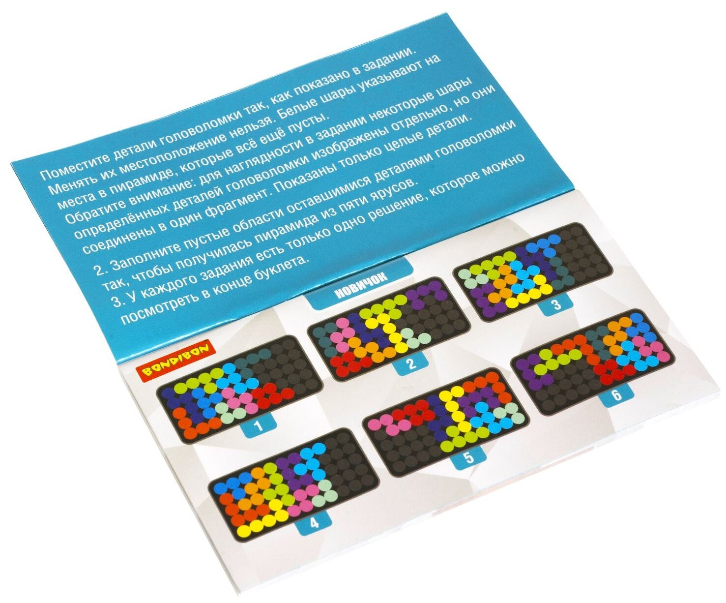 | Комплектация | коробка с игровым полем, цветные детали головоломки - 12шт, буклет с заданиями |