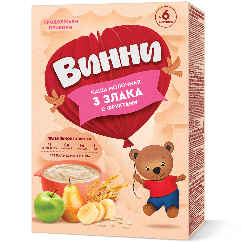 Винни Каша Молочная 3 Злака с Фруктами {с 6 мес} 200г интересное: