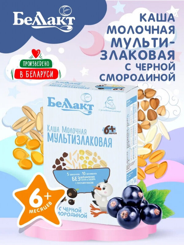 Каша зерно-молочная "Мультизлаковая с черной смородиной" беллакт , 250гр интересное: