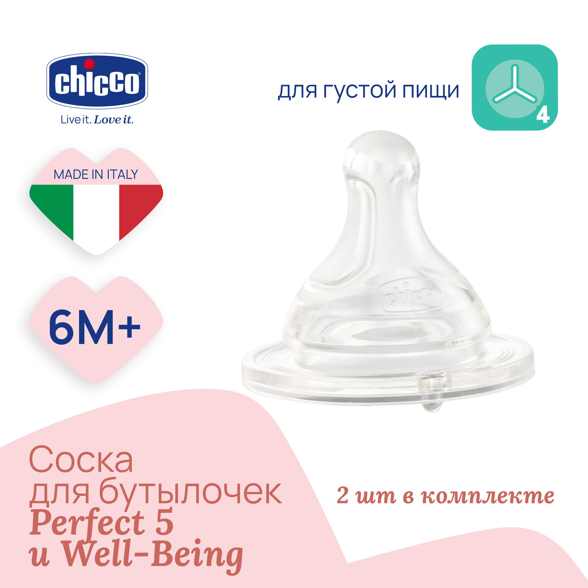 Купить Соска Chicco Perfect5 силиконовая, 2шт., 6мес.+, густая пища