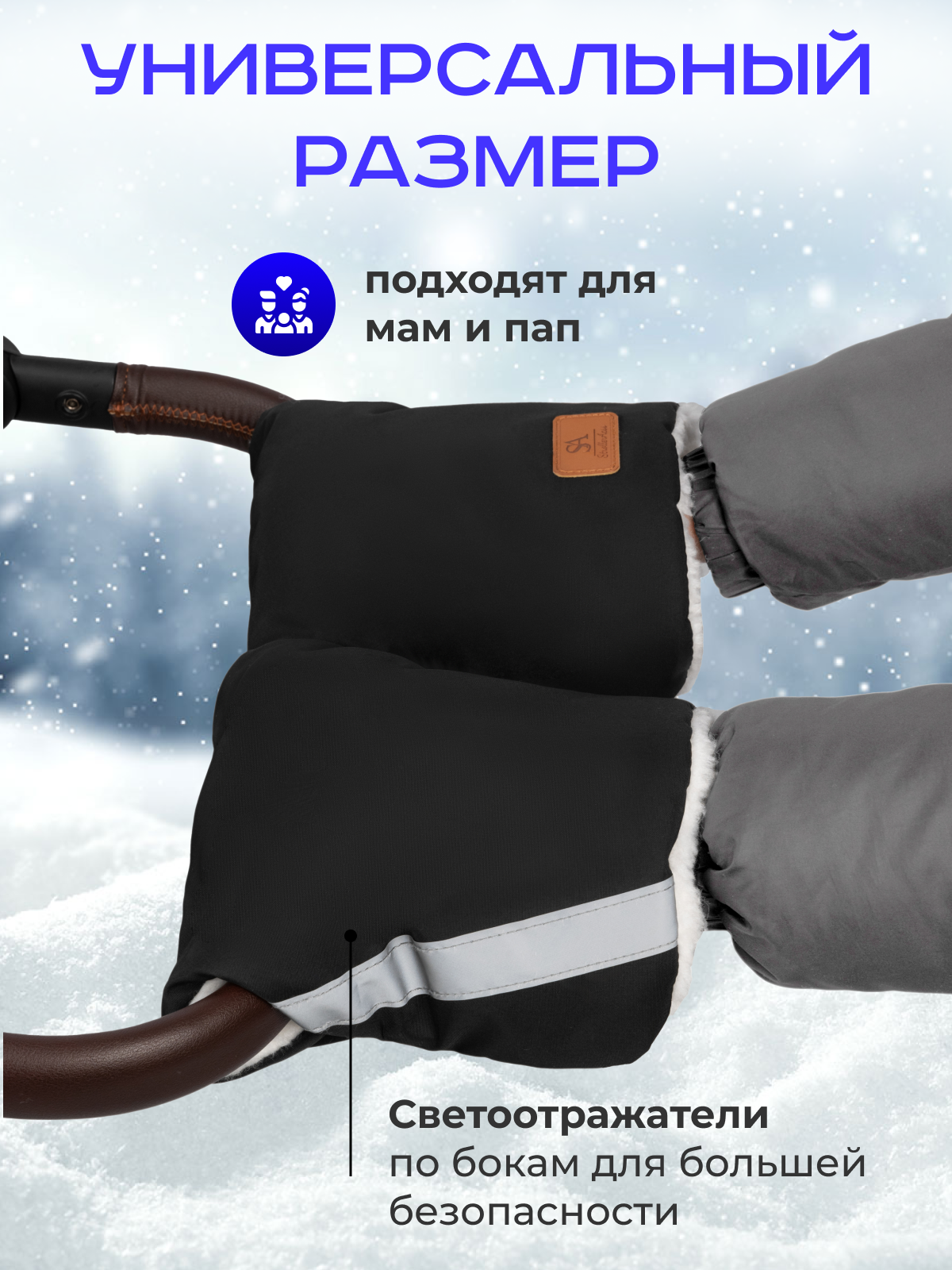Купить Муфта StrollerAcss, для коляски, овчина, водоотталкивающая, черная, 2 шт.