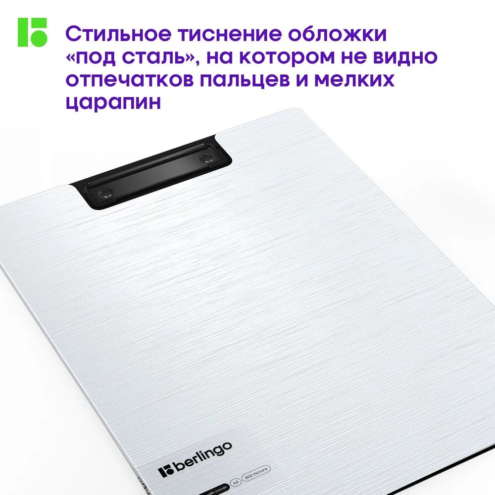 Планшет с зажимом Berlingo Steel&Style A4, пластик, полифом, серебристый металлик