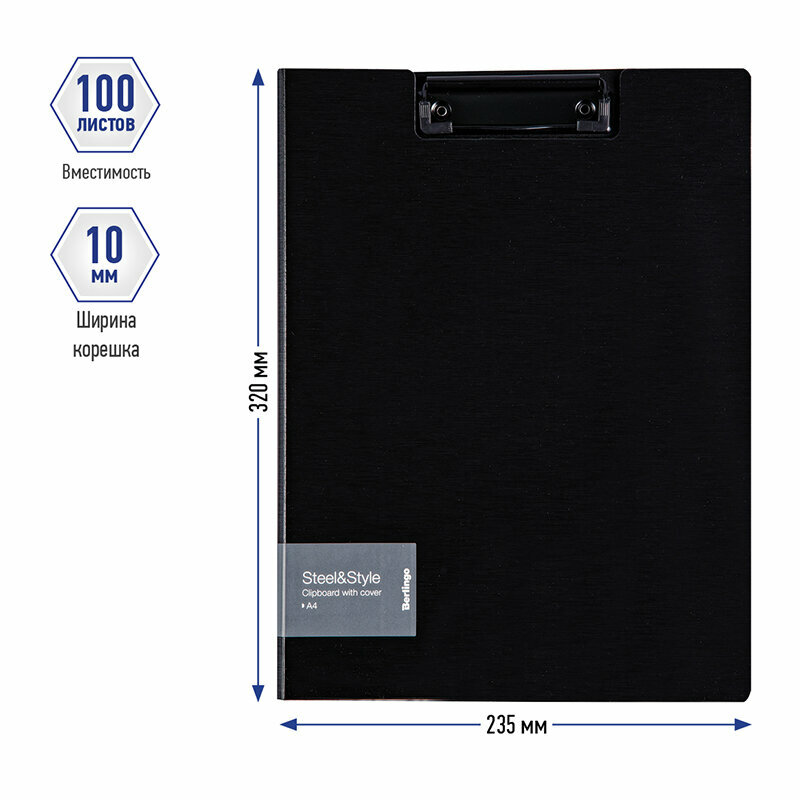Купить Планшет с зажимом Berlingo "Steel&Style" А4, пластик (полифом), черный, 2 штуки