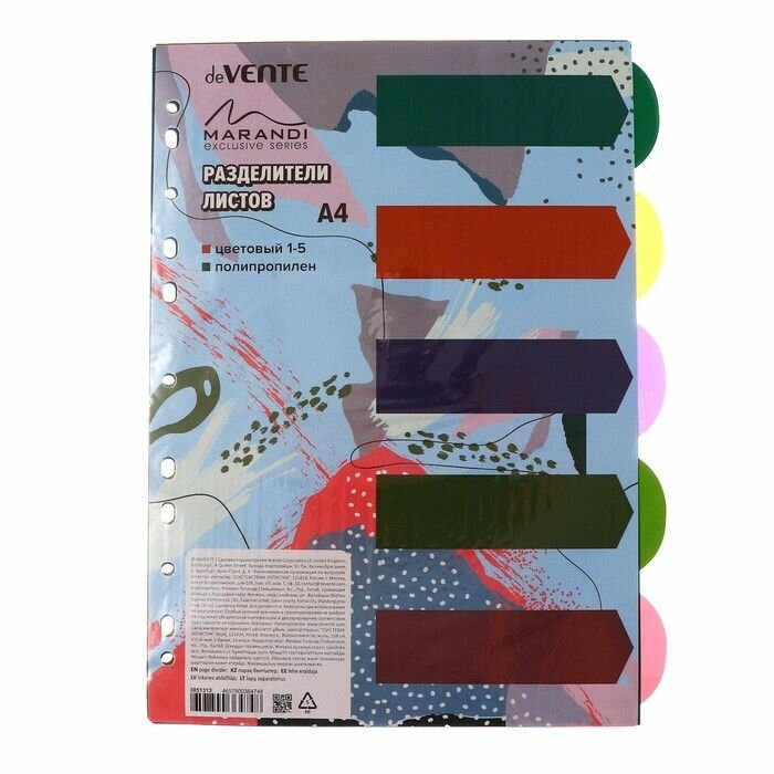 Разделитель листов deVENTE A4 300x225 мм цветовой, 5 листов, "Marandi", полипропилен 140 мкм интересное: