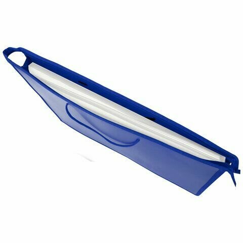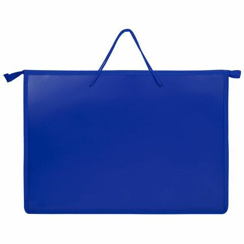 Папка-сумка портфель для рисунков, документов, для школы А3, ручки-шнурок, пластик, молния сверху, Пифагор, синяя