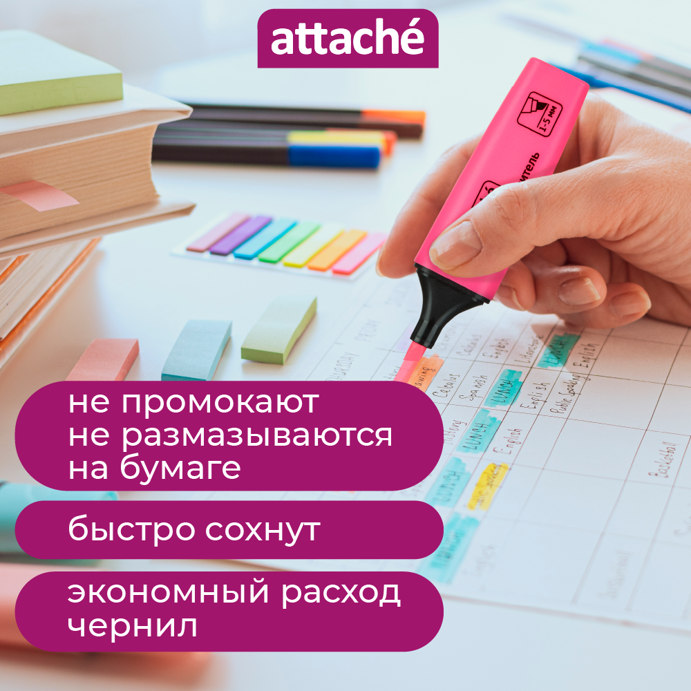 Ниже Вы можете прочитать отзывы на Текстовыделители Attache, яркие цвета, цвета, линия 1-5 мм, набор 4 шт, ознакомится с подробными характеристиками, посмотреть интересные обзоры и фотографии на Текстовыделители Attache, яркие цвета, цвета, линия 1-5 мм, набор 4 шт.