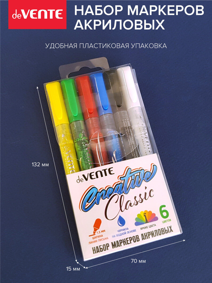 Купить Набор маркеров акриловых "deVENTE. Creative Classic" 6 классических цветов, круглый корпус, пулевидный наконечник, ширина линии 1,5 мм