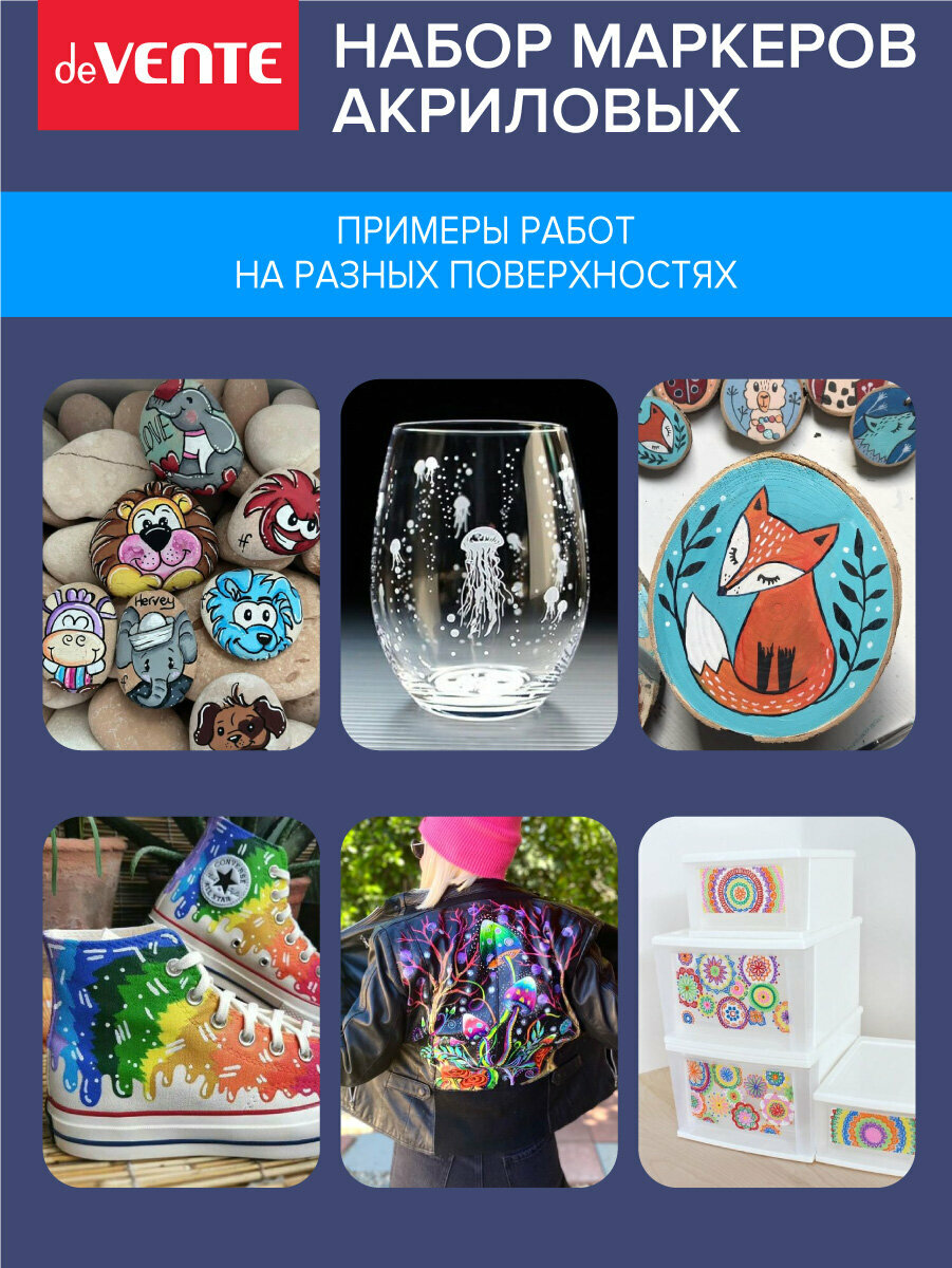 СохранитьНабор маркеров акриловых "deVENTE. Creative Classic" 6 классических цветов, круглый корпус, пулевидный наконечник, ширина линии 1,5 мм интересное: