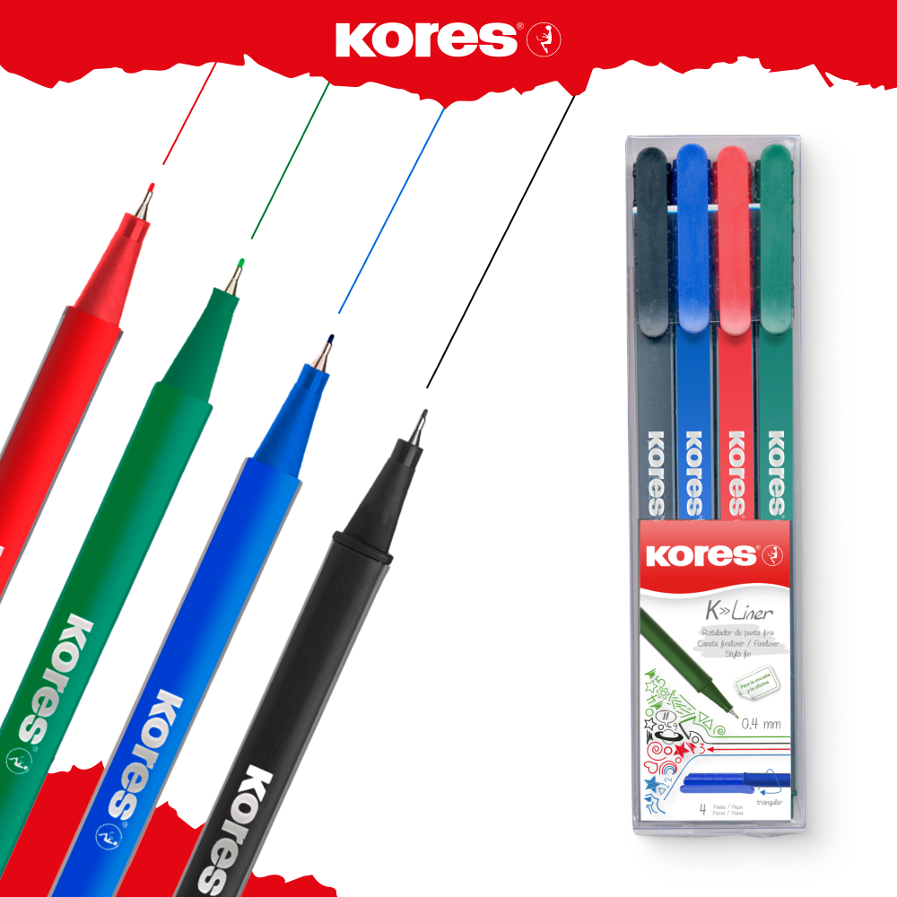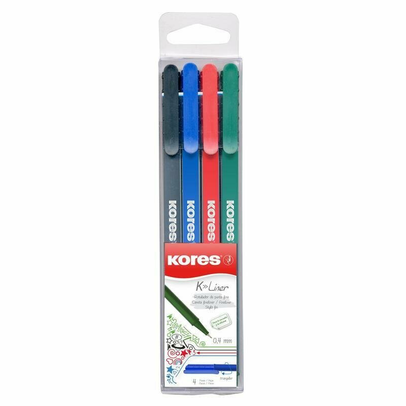 Купить Набор линеров Kores, для рисования и скетчинга, цветные, линия 0.4 мм, 4 шт
