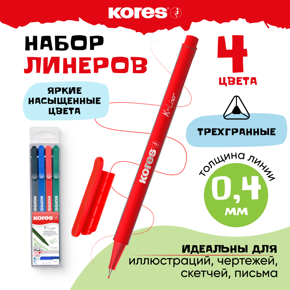 Набор линеров Kores, для рисования и скетчинга, цветные, линия 0.4 мм, 4 шт интересное:
