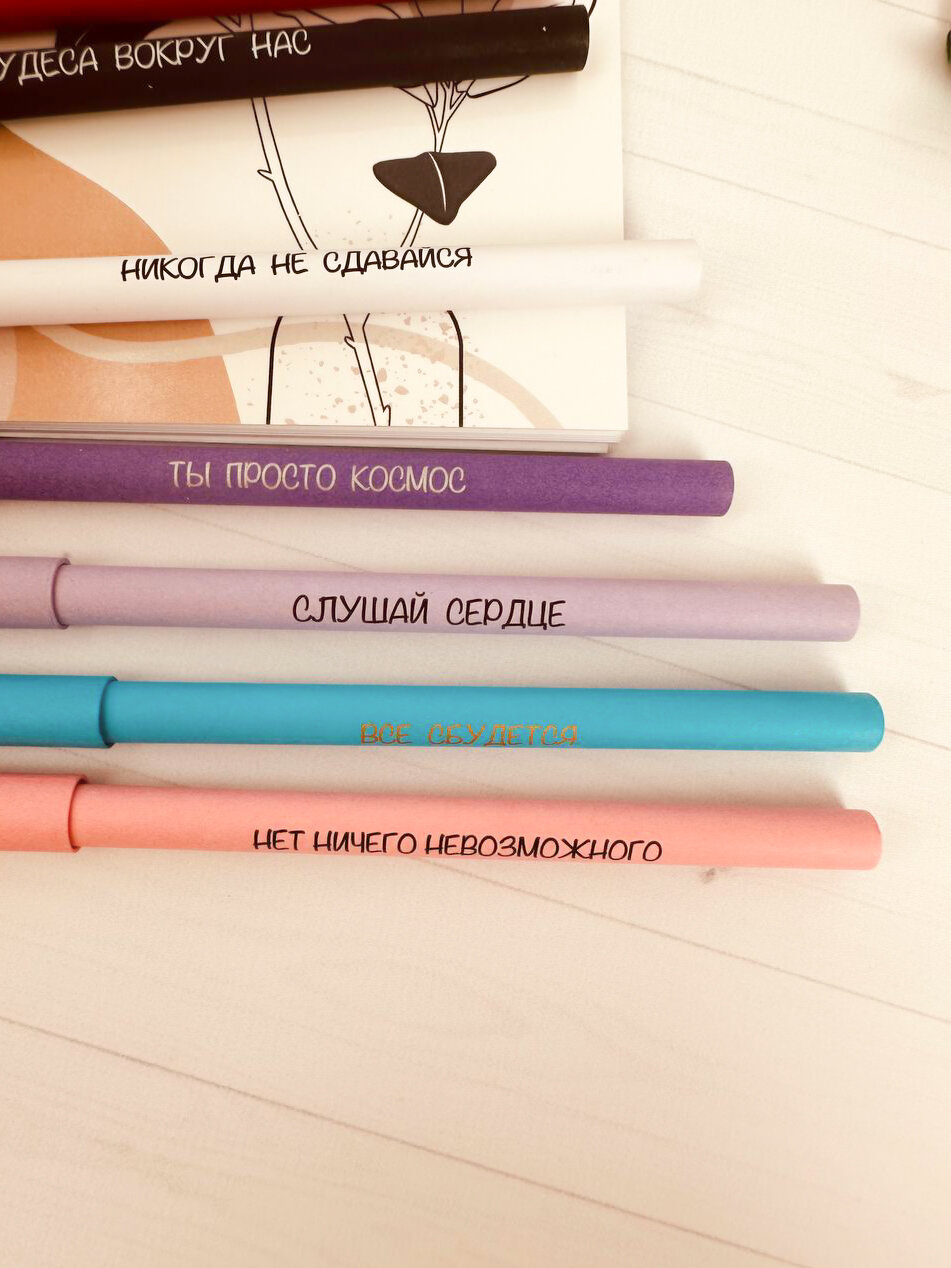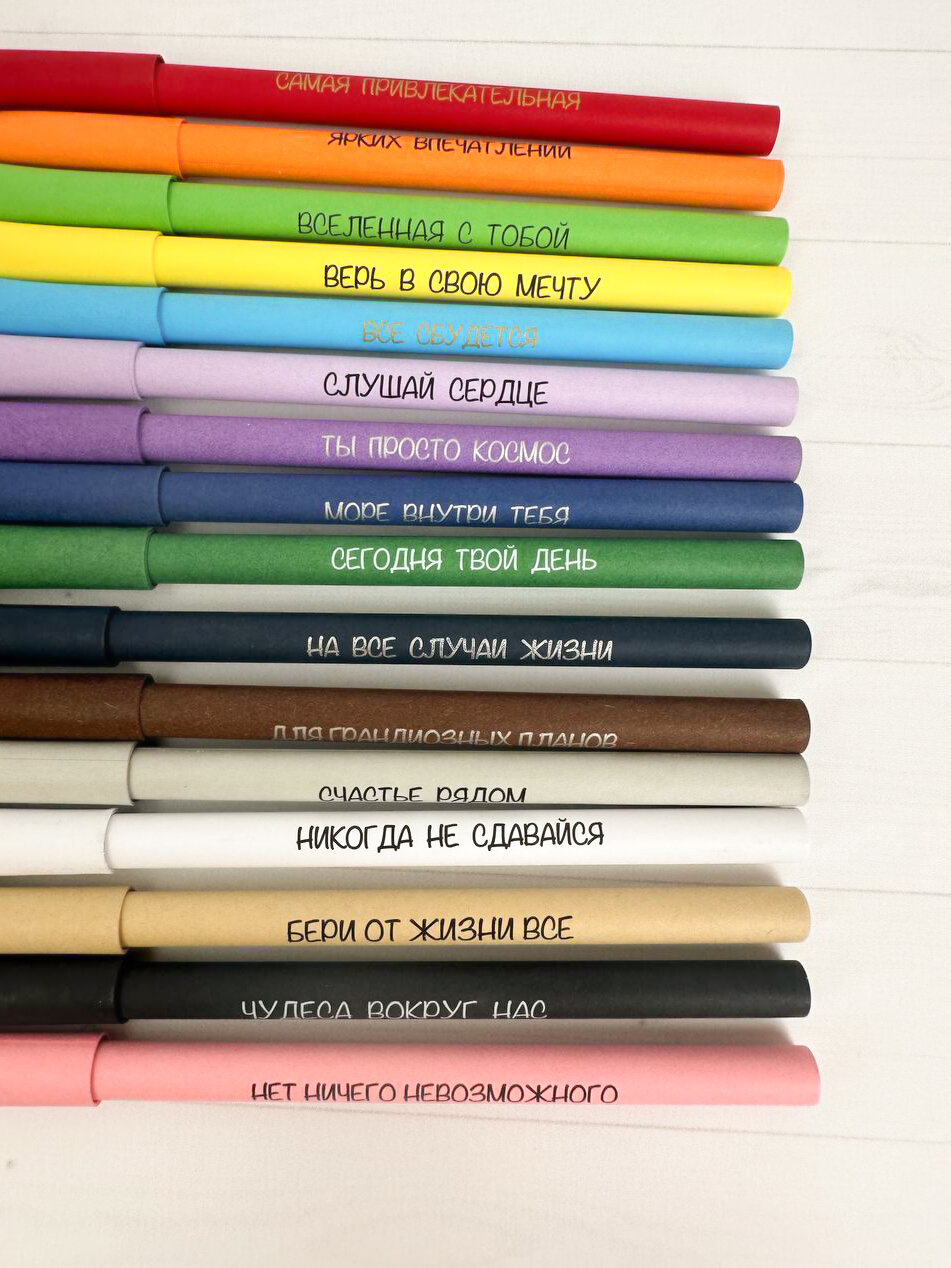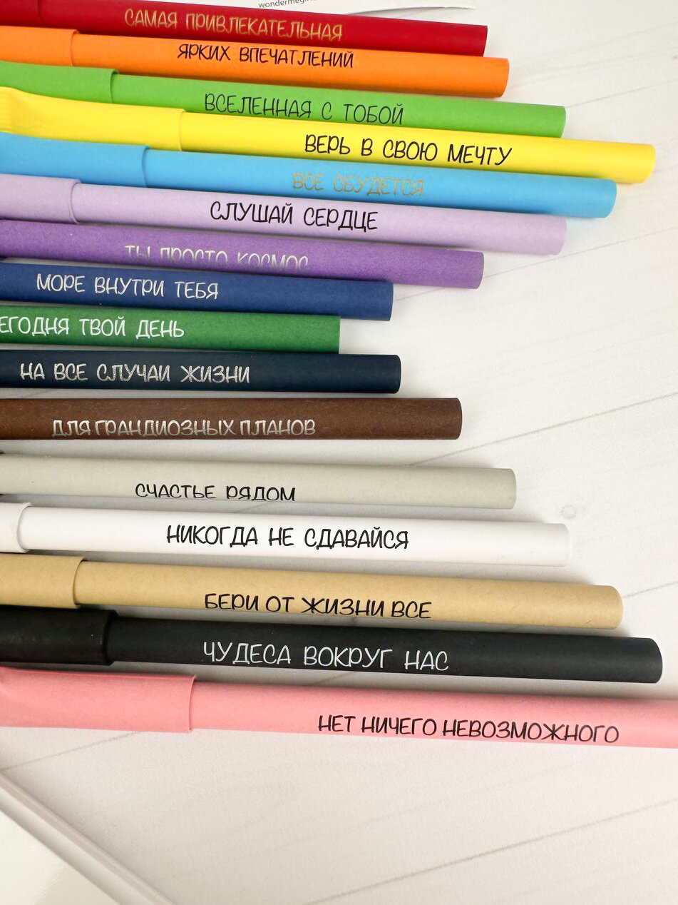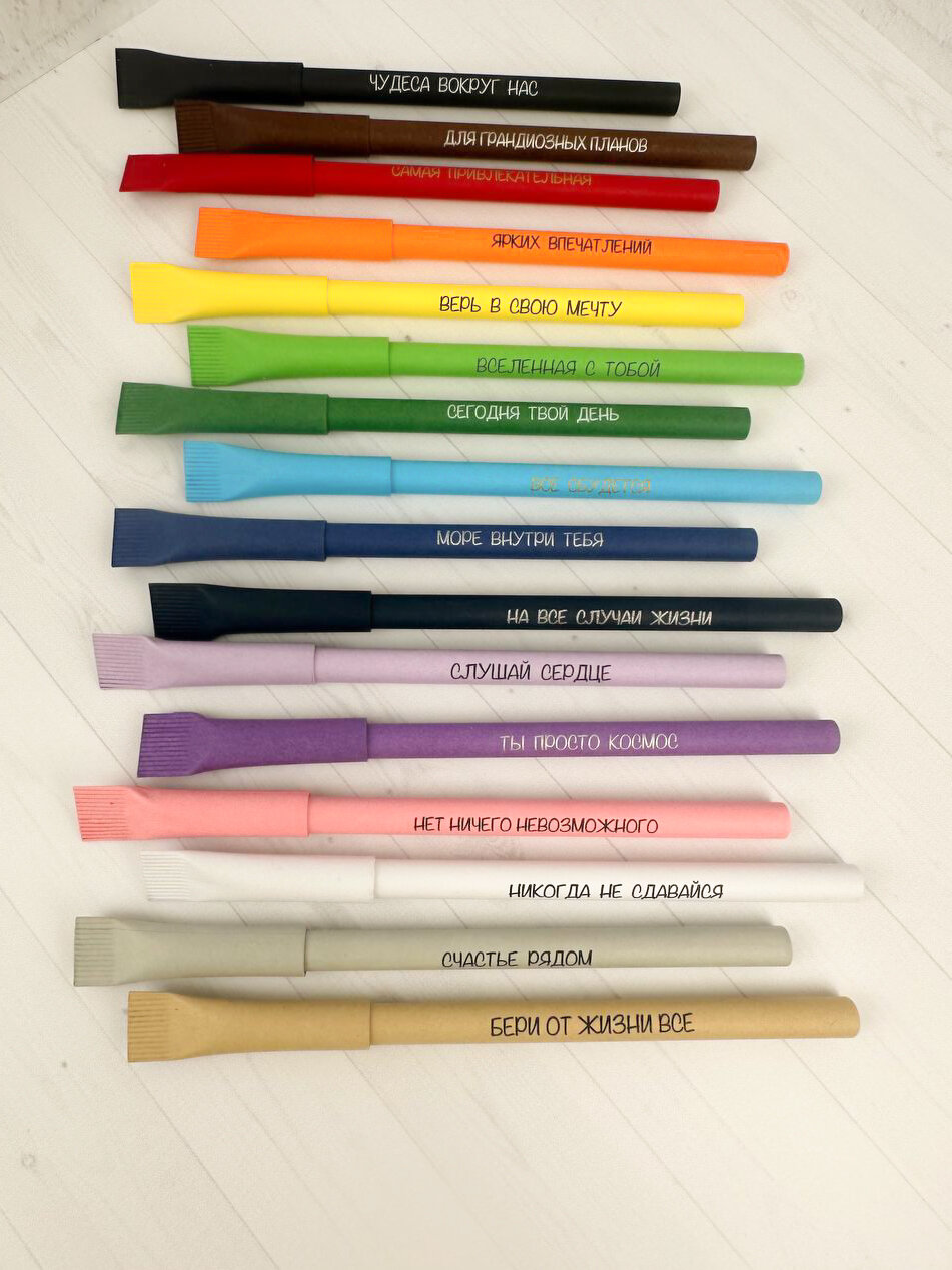 Купить Подарочный набор крафтовых ручек из картона с прикольной мотивирующей надписью / 14 штук / Крафт эко-ручки из бумаги