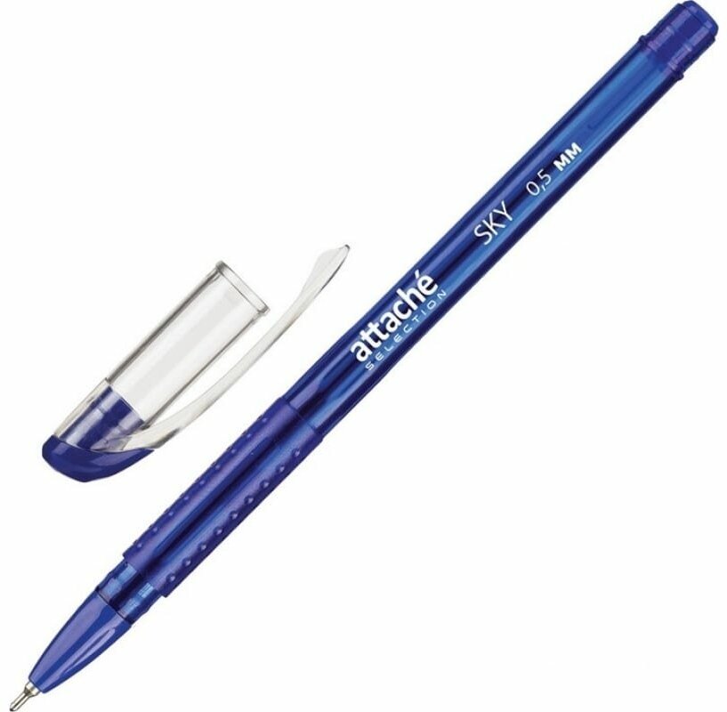 Ручки шариковые синие Attache Selection, масляные чернила, линия письма 0,5 мм, набор 12 шт
