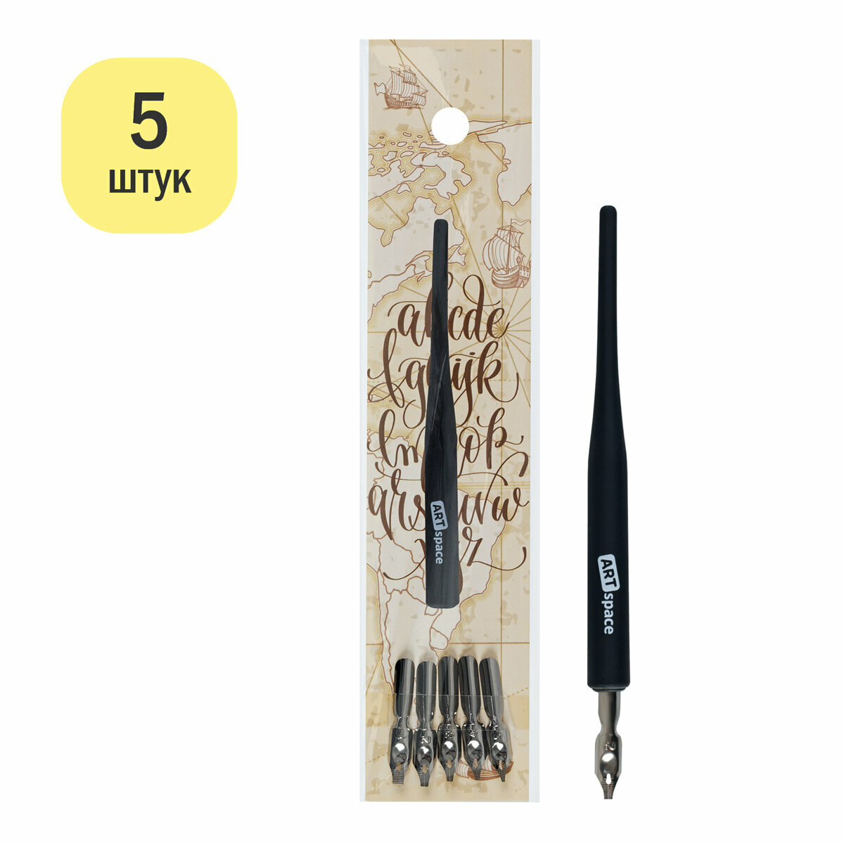 Перья плакатные ArtSpace, 5шт.+держатель