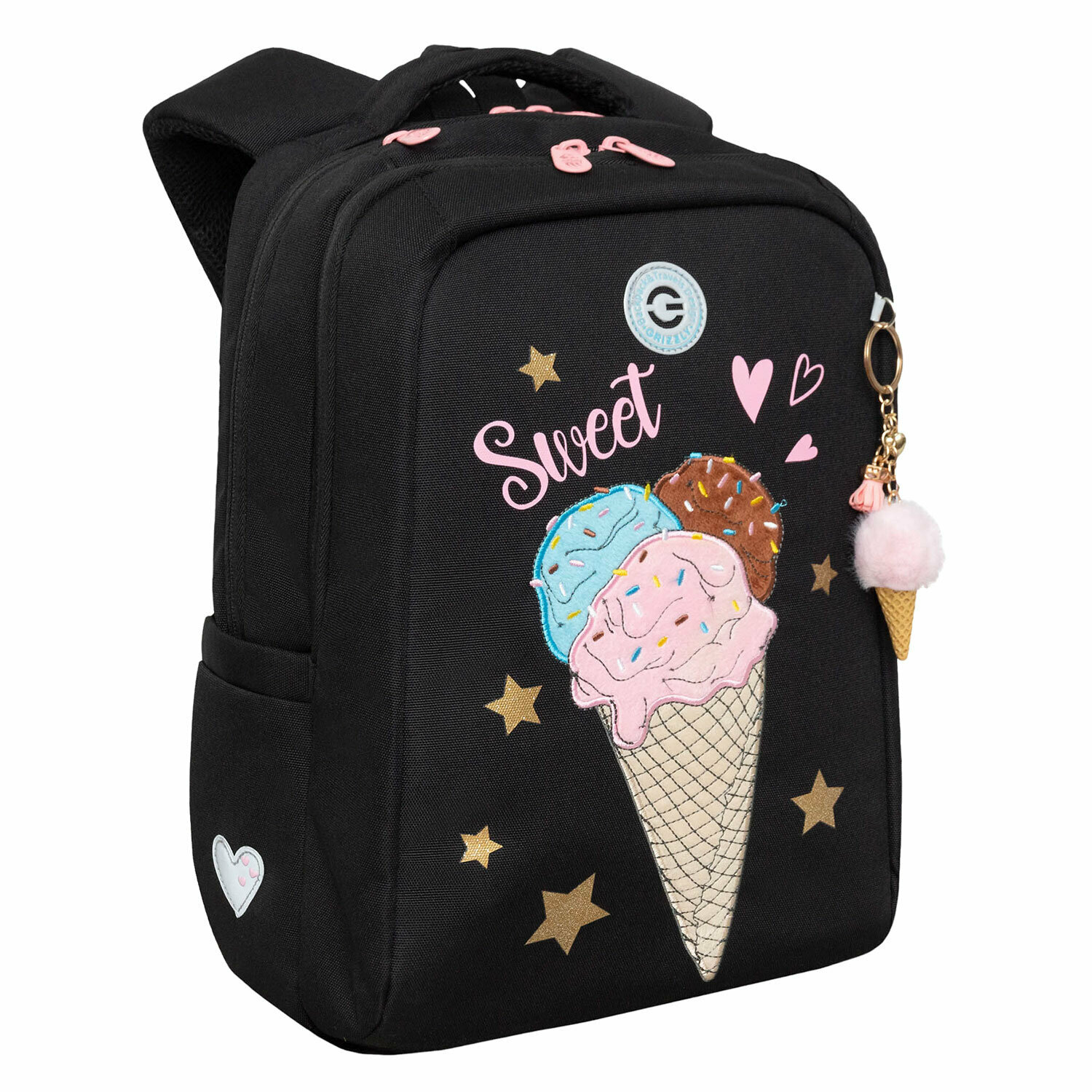 Купить Grizzly Рюкзак школьный с анатомической спинкой 2 отделения Sweet черный RG-466-3/4