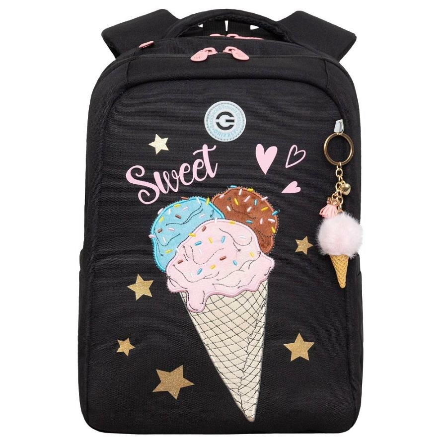 Рюкзак Grizzly школьный, анатомическая спинка, 2 отделения, SWEET, черный, 39х26х17 см, RG-466-3/4