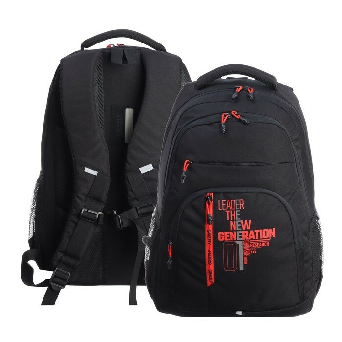 Классический мужской рюкзак GRIZZLY RU-436-2 с анатомической спинкой, для мальчика, мужской, черный-красный
