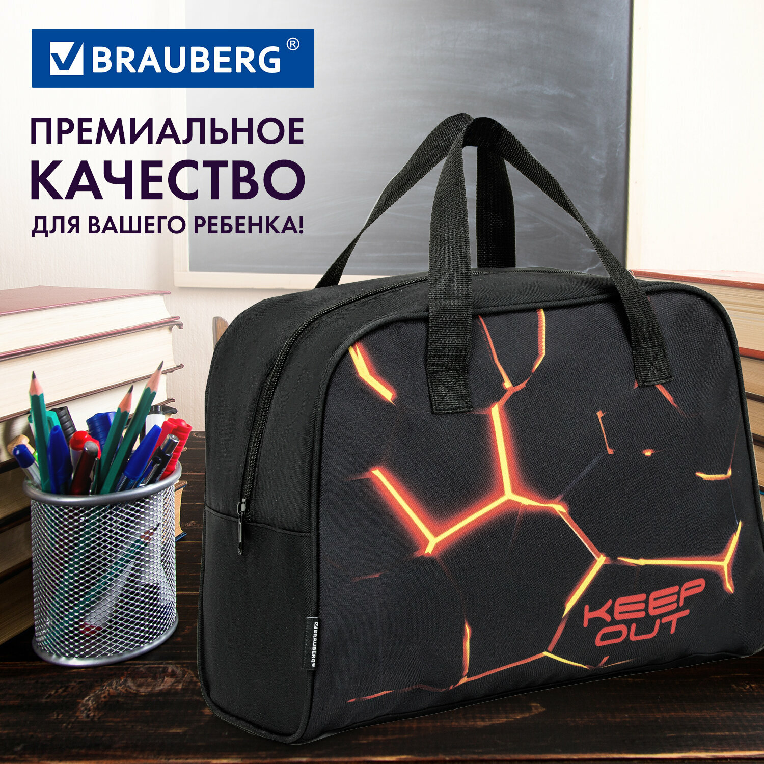 Купить Сумка для внешкольных занятий BRAUBERG с ручками, 35x25x15 см, Keep out, 272378