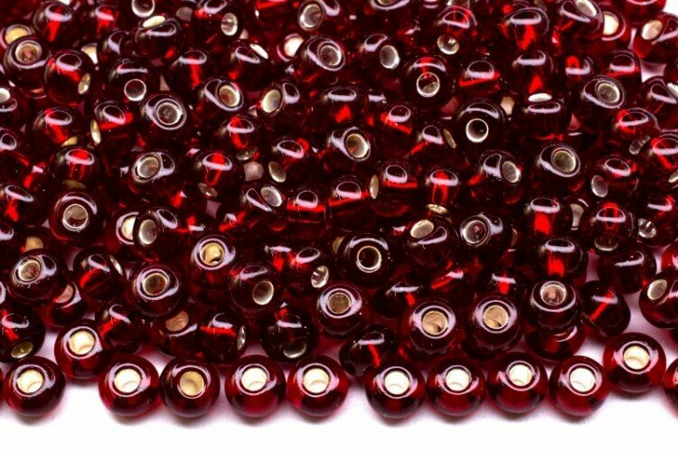 Бисер чешский PRECIOSA круглый 8/0 97090 гранатовый, серебряная линия внутри, квадратное отверстие, 50г