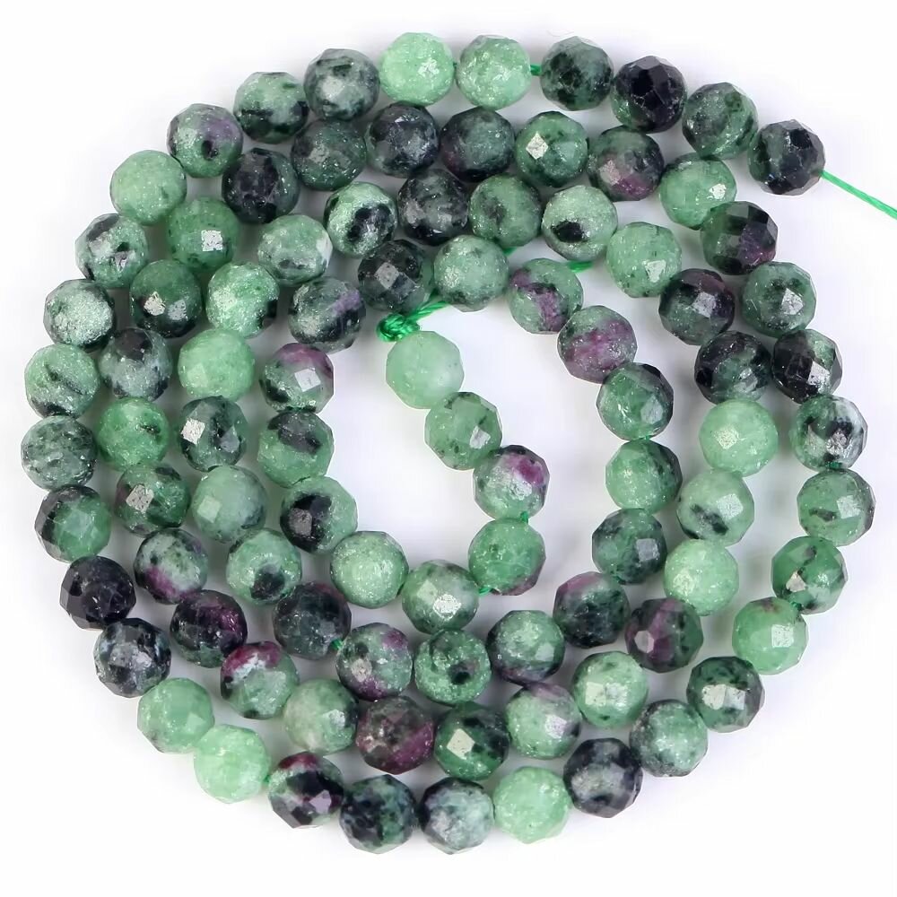 Бусины из натурального камня Цоизит граненые 4 мм, на нитке 38 см, для рукоделия
