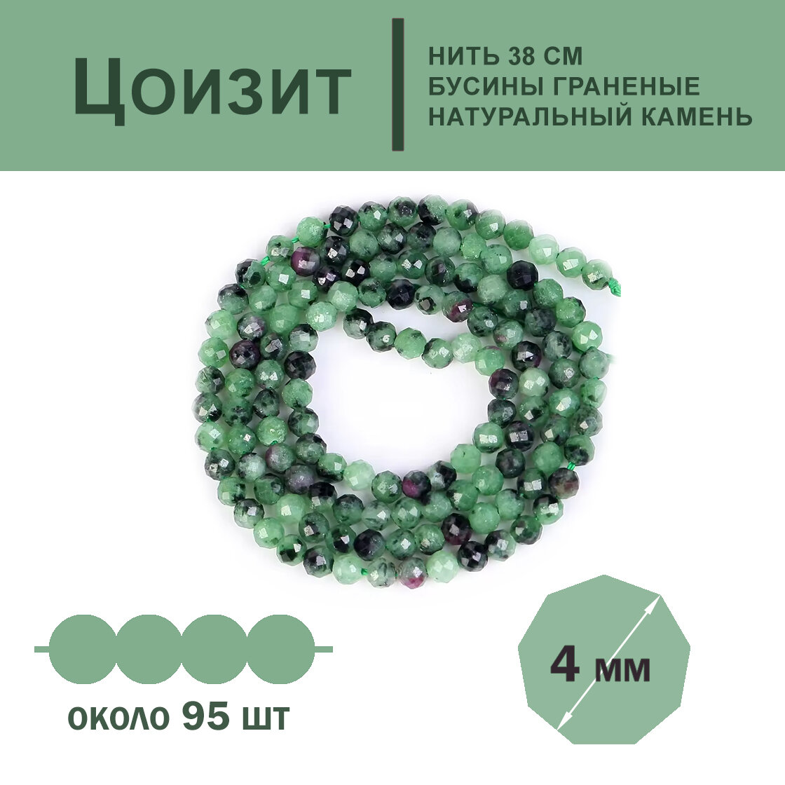 Купить KamenOpt / Бусины Цоизит граненые 4 мм, на нитке 38 см, для рукоделия