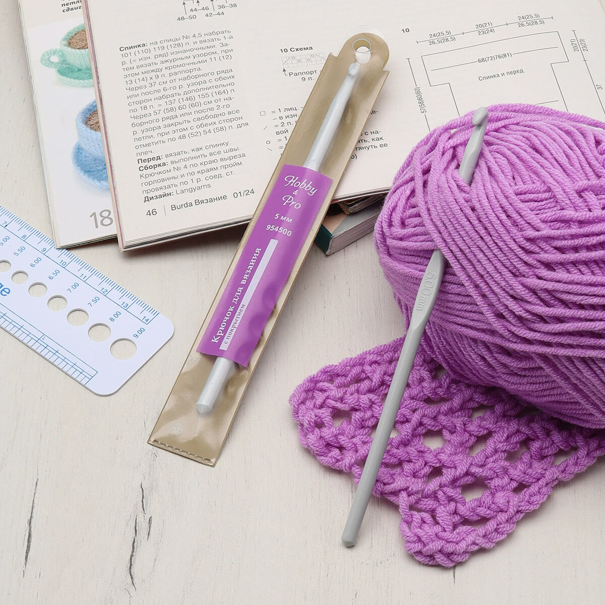 Крючок для вязания с покрытием, 5 мм, Hobby&Pro интересное: