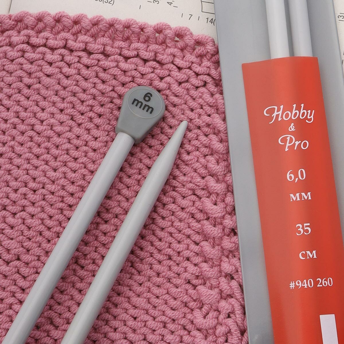 Спицы для вязания Hobby&Pro прямые, алюминиевые, с покрытием 35 см, 6,0 мм