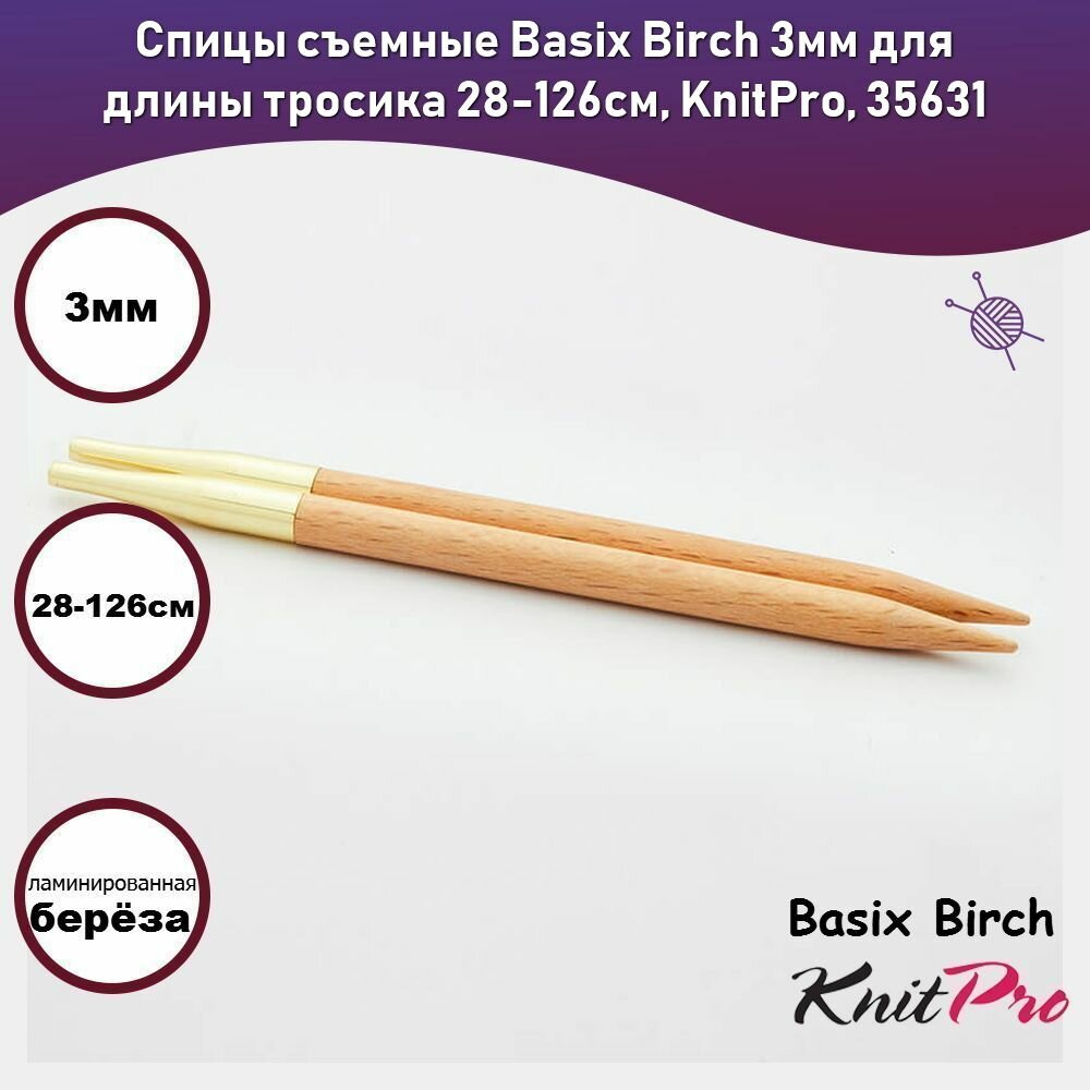 Спицы съемные Knit Pro Basix Birch, 3 мм, для длины тросика 28-126 см, береза, натуральный, 2 шт (KNPR.35631)
