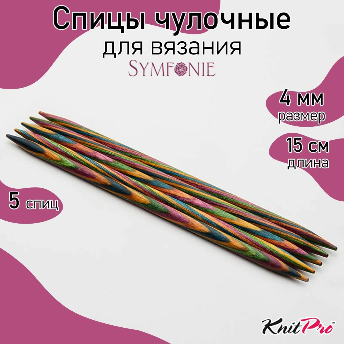 Купить 20121 Knit Pro Спицы чулочные для вязания Symfonie 4мм/15см, дерево, многоцветный, 5шт