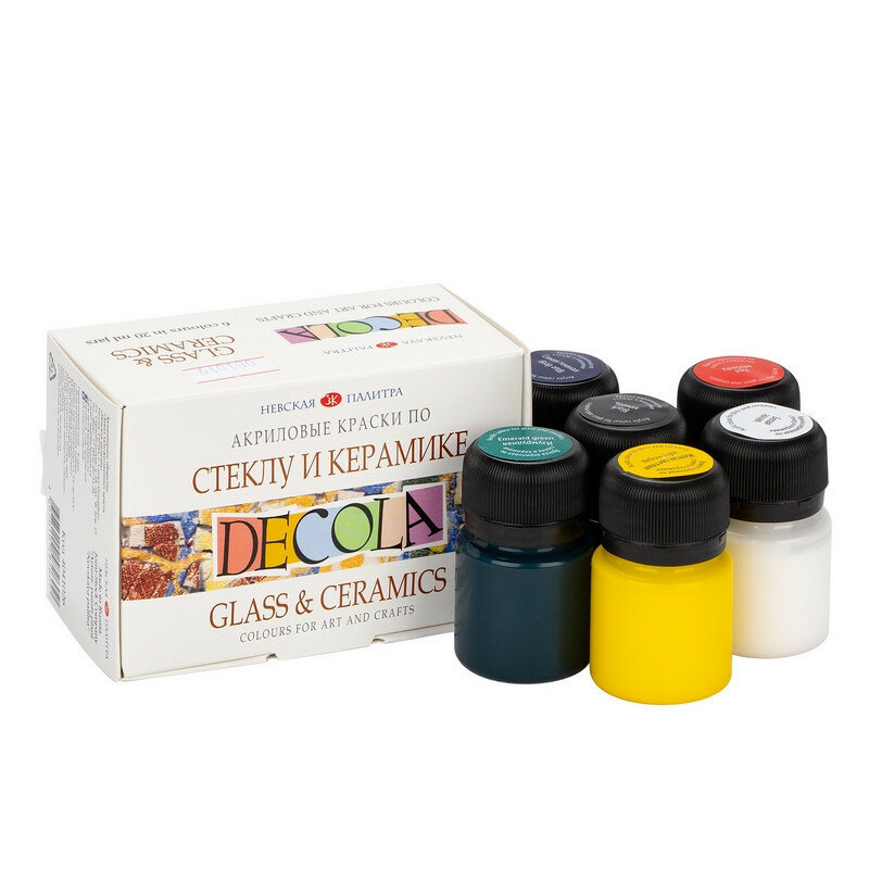 DECOLA / Акриловые краски по стеклу и керамике, 6 цветов по 20 мл, ЗХК Невская палитра