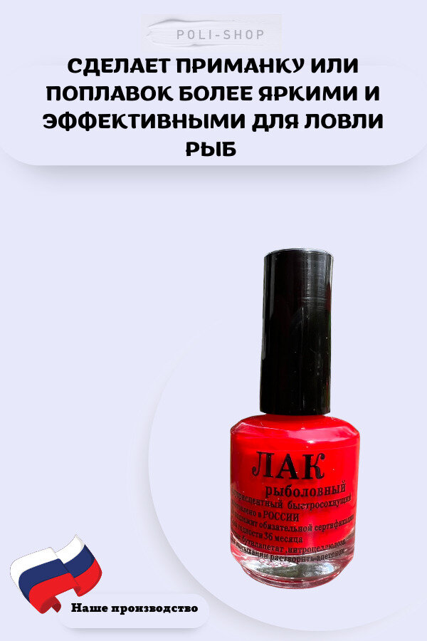 | Дополнительная информация | Лак рыболовный, флуоресцентный быстросохнущий |