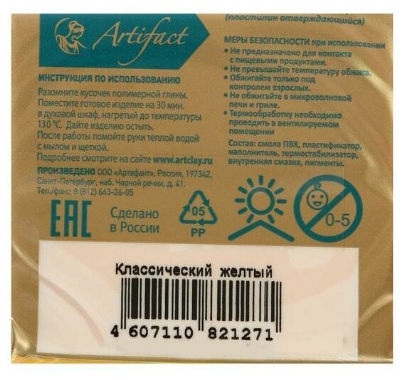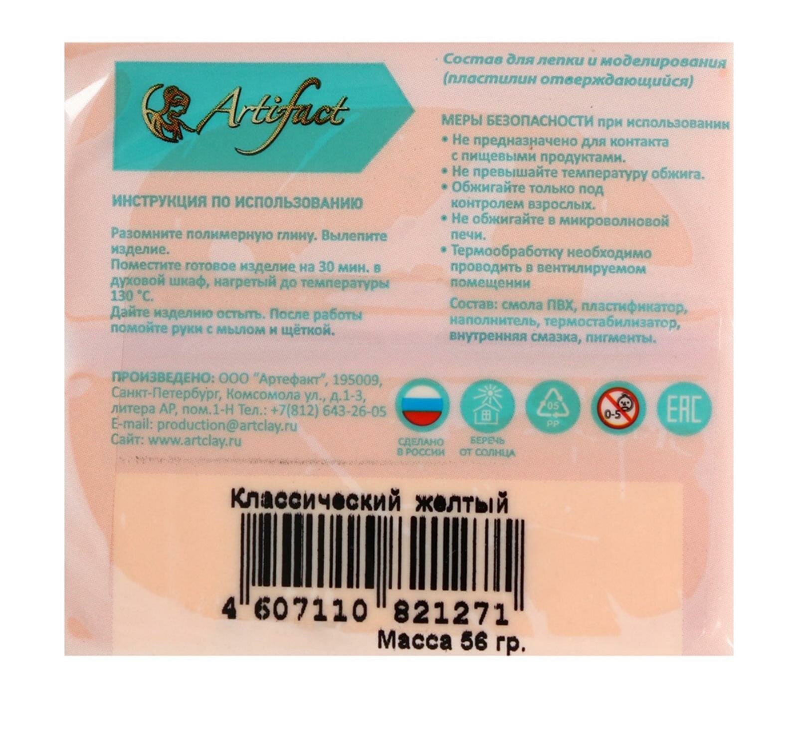 | Подробная комплектация | Полимерная глина запекаемая Артефакт Классическая, брус 50-56 г |