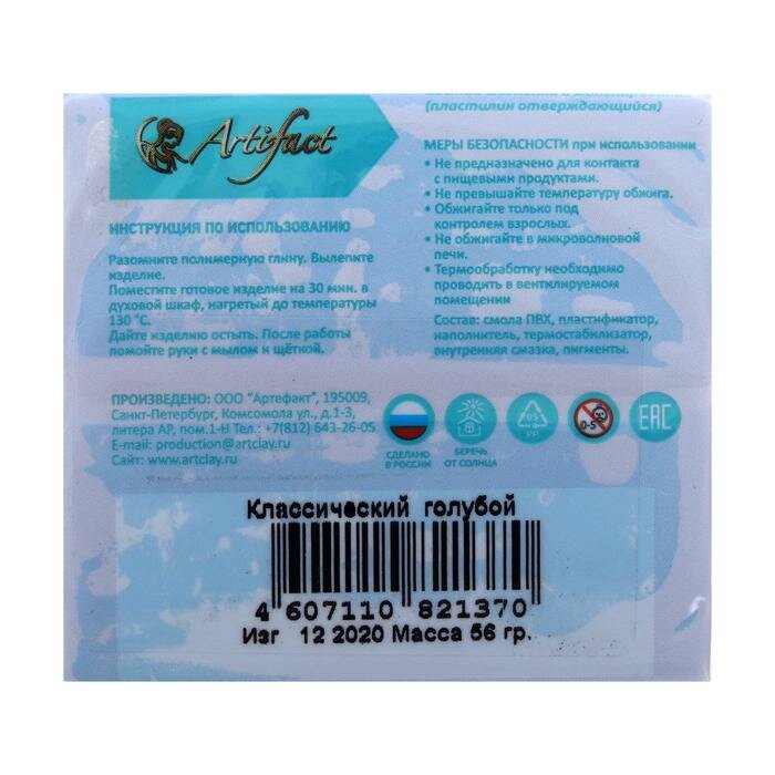 | Подробная комплектация | Полимерная глина запекаемая Артефакт Классическая, брус 50-56 г |