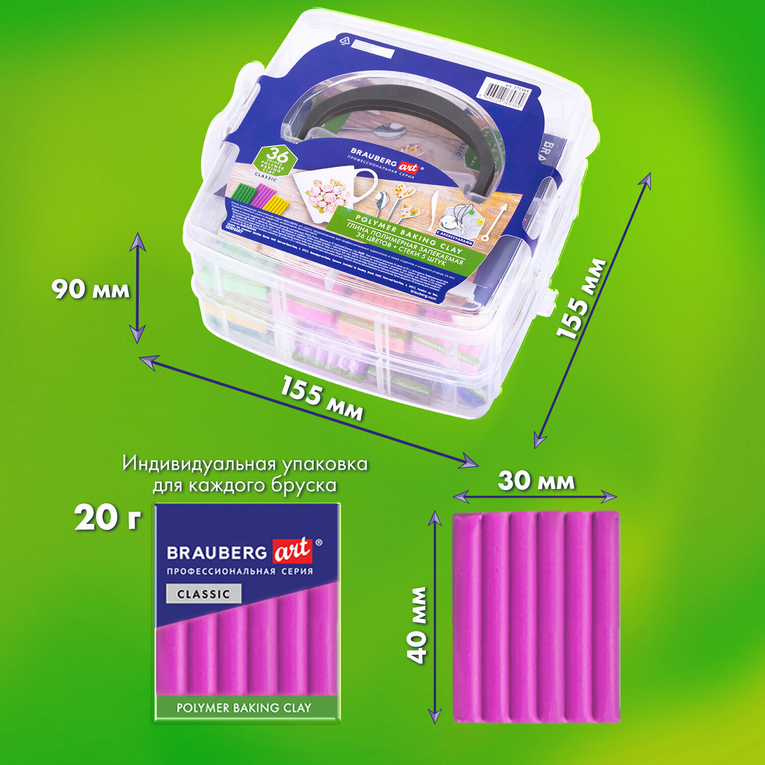 Глина полимерная Brauberg Art, запекаемая, набор 36 цветов по 20г, с аксессуарами в кейсе (271164)