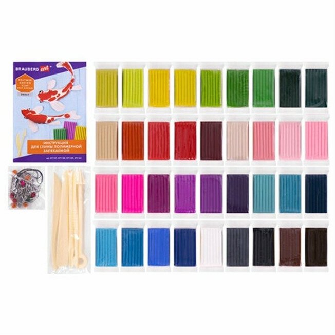 Купить Глина полимерная Brauberg "Art", запекаемая, 36 цветов по 20 г, с аксессуарами, в кейсе