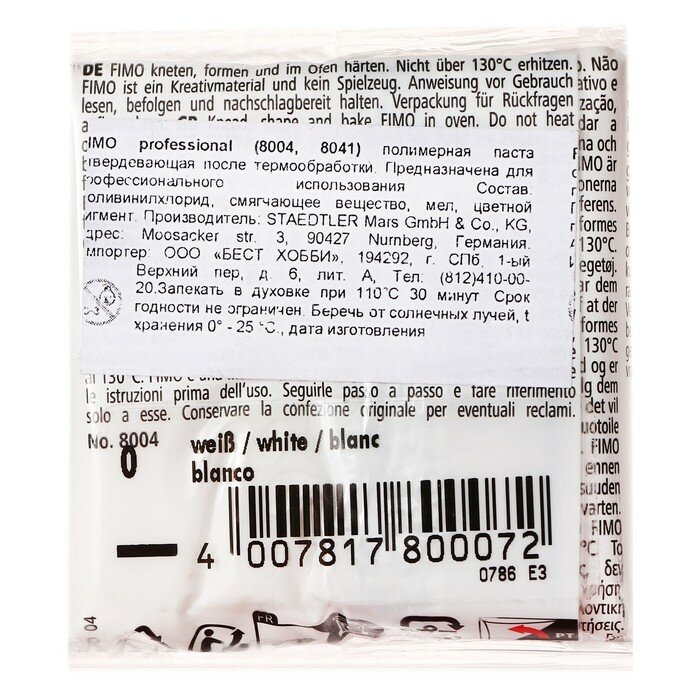Купить Полимерная глина Fimo Professional 8004-0 белый (white) 85 г., цена за 1 шт.