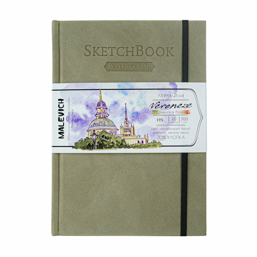 Купить Скетчбук Малевичъ для акварели Veroneze, 70% хлопок 300 г/м, серо-зеленый, А5, 20л