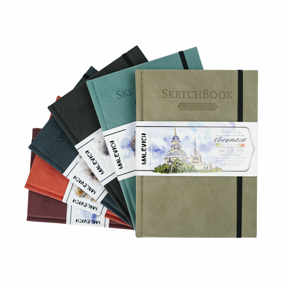 СохранитьСкетчбук Малевичъ для акварели Veroneze, 70% хлопок 300 г/м, серо-зеленый, А5, 20л интересное: