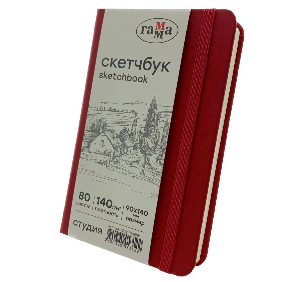 Скетчбук Гамма 80 листов, 90х140 "Студия" винный, твердая обложка, на резинке, 140 г/м2 (75S01B780IW)