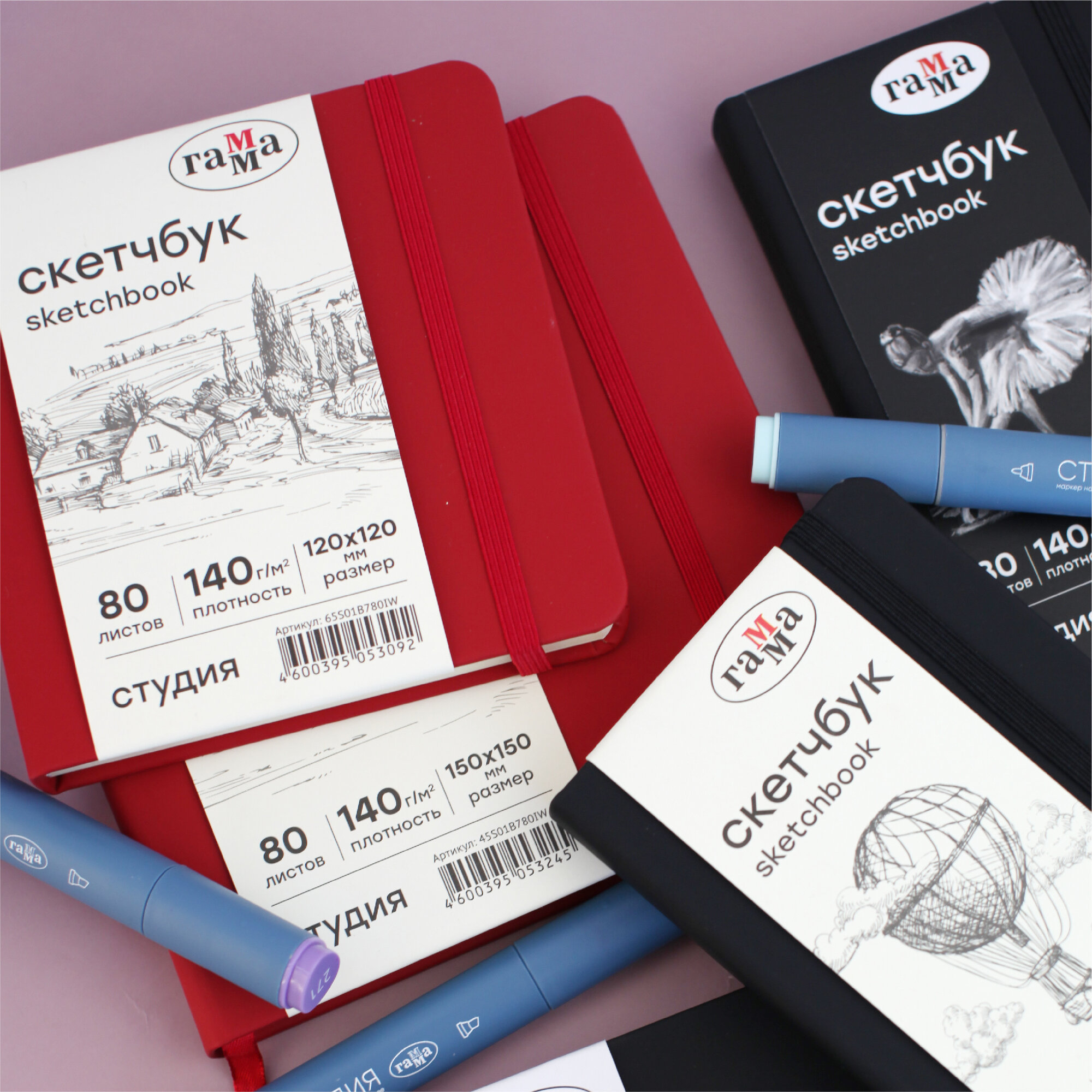 СохранитьНабор из 1 шт. - Скетчбук 80л., 90*140 Гамма "Студия", винный, твердая обложка, на резинке, слоновая кость, 140г/м2 интересное: