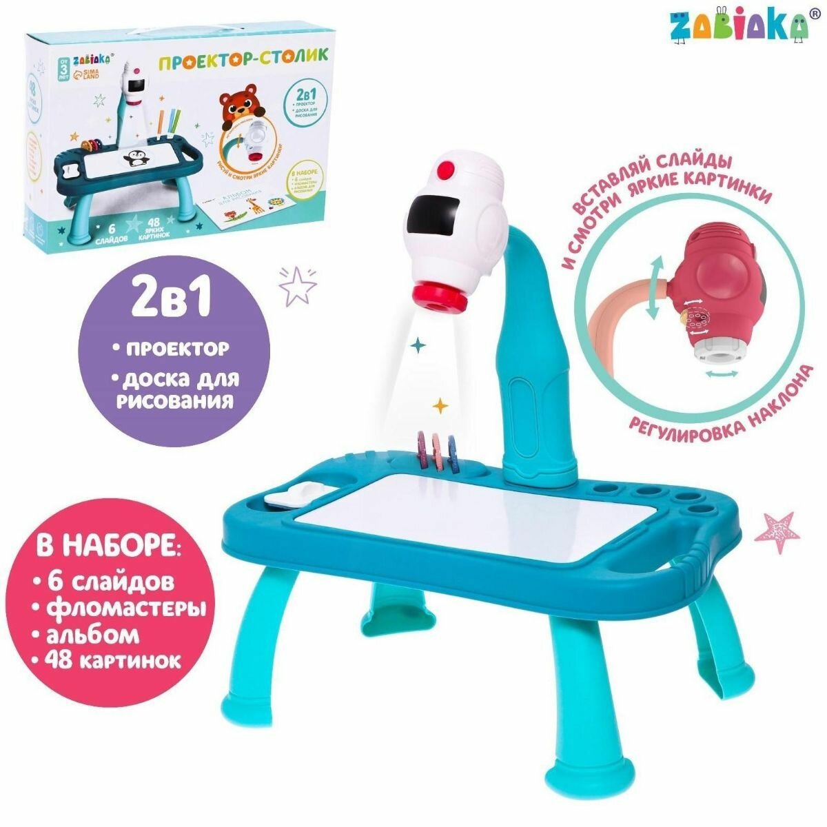 Столик-проектор ZABIAKA слайды, фломастеры, альбом и картинки, свет, цвет синий (2012-12R)