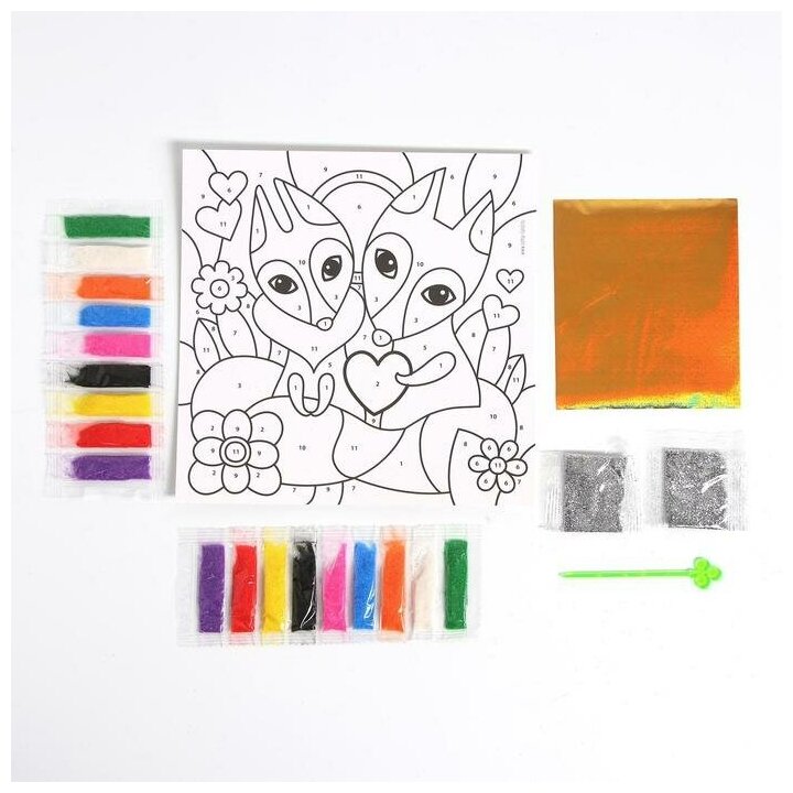 Фреска песком Школа талантов "Рыжее счастье", 9 цветов по 4 г, блестки, стека интересное: