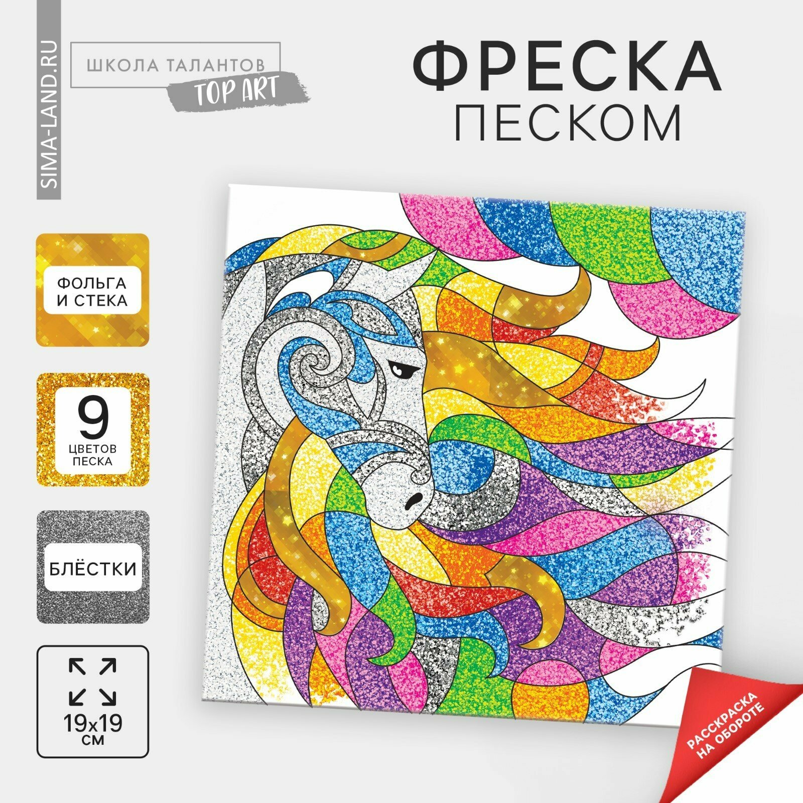 Купить Фреска песком Школа талантов "Лошадь", 9 цветов песка по 4 гр, блестки, стека